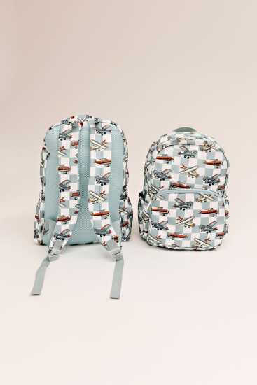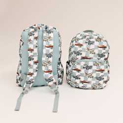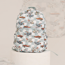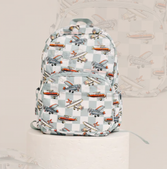 Whether it's first adventures, Daycare or School milestones, these backpacks are designed to be worn and adored by little ones. Featuring an exclusive vintage airplane print on a soft checkered sky-blue background, this bag brings fun and function together for every journey.