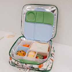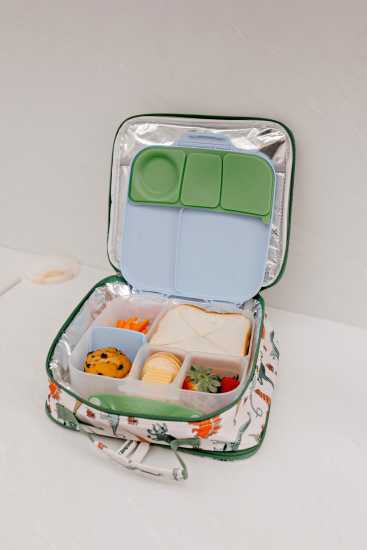 Roarsome lunches start here! The Dino Land insulated lunch bag features a prehistoric parade of dinosaurs in earthy greens, rust, and mustard tones – perfect for your little explorer.