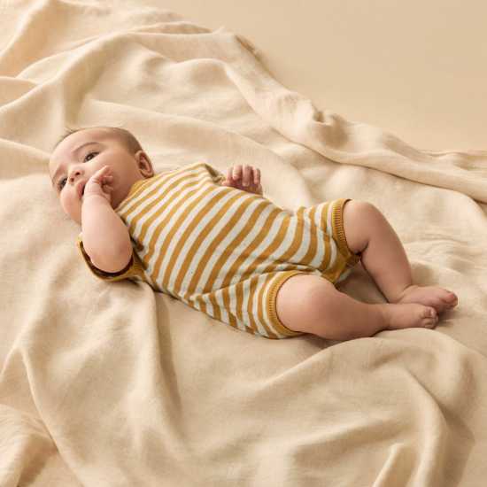 Made for comfort and cuteness, our Golden Wave Stripe organic knitted growsuit is a must-have for your baby’s everyday wardrobe. Crafted from soft, breathable organic cotton knit, this cosy one-piece features an all-over golden stripe design that’s perfect for sunny days and playful moments. Designed with a relaxed fit for easy movement and snaps at the crotch for hassle-free nappy changes, it combines style and practicality in one adorable outfit. Ideal as a summer baby outfit or thoughtful newborn gift, this knitted baby growsuit is gentle on delicate skin and kind to the planet.