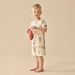 Imagine your little ones wrapped up in the cosy comfort of our two-piece organic cotton pyjama set. Not only is it the perfect gift for older kids, but it's also designed with their sensitive skin in mind. Made from the softest, GOTS-certified organic cotton jersey, this pyjama set includes a short sleeved tee and loose fitting mid length short.