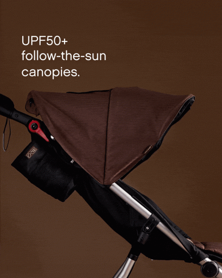 • UPF50+ follow-the-sun canopies.