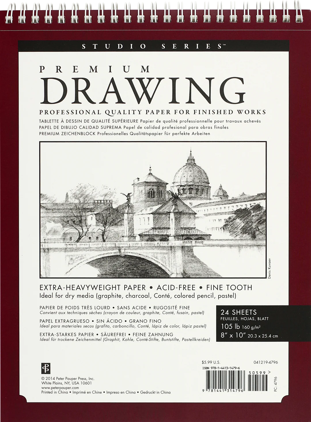 Specifically designed for finished artwork, professional quality Premium Drawing Pad features ultra-heavyweight paper with fine, even tooth.