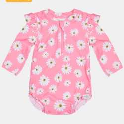 The beauty, functionality and elevated quality for which Toshi is traditionally renowned, is crafted into an exquisite baby swimwear collection. Rated UPF 50+, Toshi Swim offers maximised sun protection and water safety. The finest quality fabrication is fast drying and chlorine & salt water friendly. The adorable Toshi Swim Onesie features a frill on shoulders for a playful and charming touch. A high neckline and long sleeves ensure greater sun protection. Bottom opening press studs facilitate efficient nappy changes. The Swim Onesie has a front opening neck zip for ease of dressing. Seamless sides offer greater comfort and enhanced contouring. An original and exclusive Toshi print design is featured.
