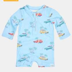 The beauty, functionality and elevated quality for which Toshi is traditionally renowned, is crafted into an exquisite baby swimwear collection. Rated UPF 50+, Toshi Swim offers maximised sun protection and water safety. The finest quality fabrication is fast drying and chlorine & salt water friendly. The adorable Toshi Swim Onesie features a frill on shoulders for a playful and charming touch. A high neckline and long sleeves ensure greater sun protection. Bottom opening press studs facilitate efficient nappy changes. The Swim Onesie has a front opening neck zip for ease of dressing. Seamless sides offer greater comfort and enhanced contouring. An original and exclusive Toshi print design is featured.
