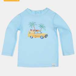 The beauty, functionality and elevated quality for which Toshi is traditionally renowned, is crafted into an exquisite baby swimwear collection. Rated UPF 50+, Toshi Swim offers maximised sun protection and water safety. The finest quality fabrication is fast drying and chlorine & salt water friendly. The adorable Toshi Swim Onesie features a frill on shoulders for a playful and charming touch. A high neckline and long sleeves ensure greater sun protection. Bottom opening press studs facilitate efficient nappy changes. The Swim Onesie has a front opening neck zip for ease of dressing. Seamless sides offer greater comfort and enhanced contouring. An original and exclusive Toshi print design is featured.