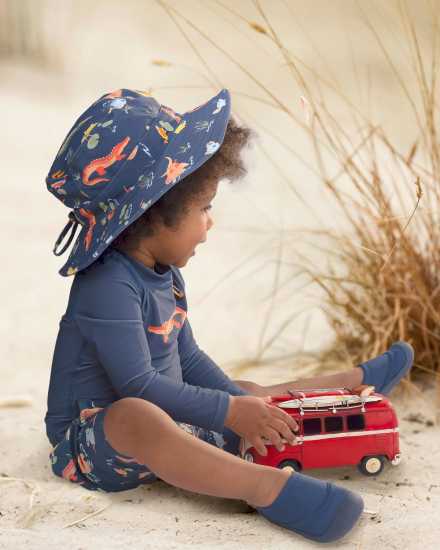 Toshi Reef Booties are designed to protect precious baby feet during aquatic adventures. The UPF 50+ ultraviolet rating offers enhanced sun safety. Toshi Reef Booties are crafted from quality and durable neoprene fabric. Ergonomically considered rubber soles cushion each step, providing flexibility and stability. Baby safety is supported with a skid resistant rubber sole grip. With a carefully crafted and contoured cuff, Booties easily slip on and off. Toshi Reef Booties are fast drying and machine washable.